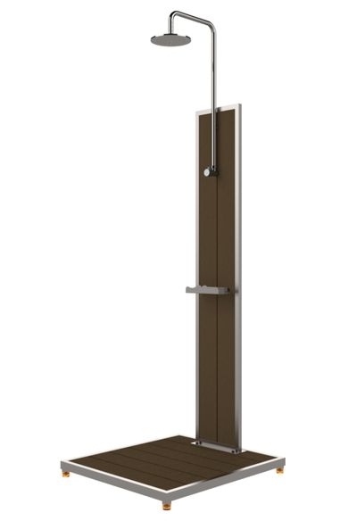 Die Gartendusche Bahama ist eine elegante und hochwertige Dusche für Ihren Garten. Die großzügige Bodenplatte, die mit WPC-Dielen ausgestattet ist, sorgt dafür, dass Ihre Füße immer sauber bleiben. Sie ist zudem mit einem Edelstahlrahmen versehen, der für zusätzliche Stabilität sorgt. Die praktische Ablage bietet ausreichend Platz für Ihr Duschzubehör. Beachten Sie bitte, dass die Ideal Gartendusche Bahama als Kaltwasserdusche ausgelegt ist.