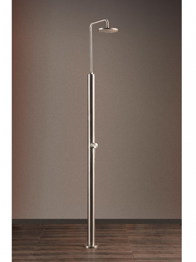 Die Ideal Gartendusche Romeo hat eine Höhe von etwa 219,6 cm und das Wasser tritt aus einer Höhe von ca. 209,8 cm aus. Mit einem Gewicht von ca. 25 kg hat die Gartendusche einen festen Stand und ist dennoch leicht zu handhaben.