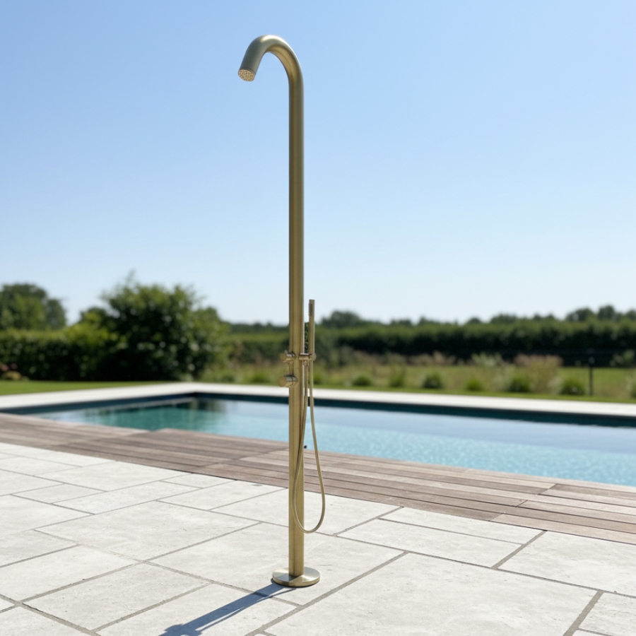 Entdecken Sie die Gartendusche Sylt Gold von Ideal für luxuriöse Dusch-Erlebnisse