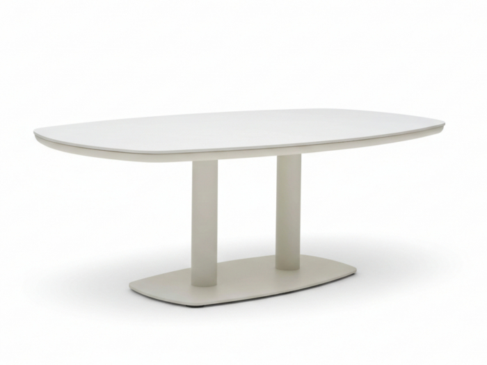 Wie präsentiert sich das Design von Gestell, Tischplatte und Polstern?