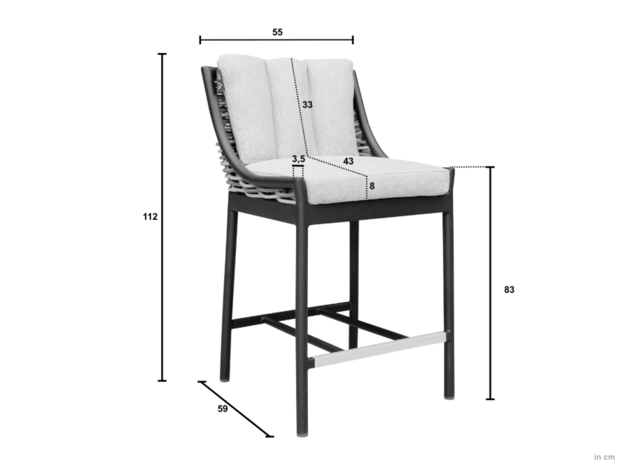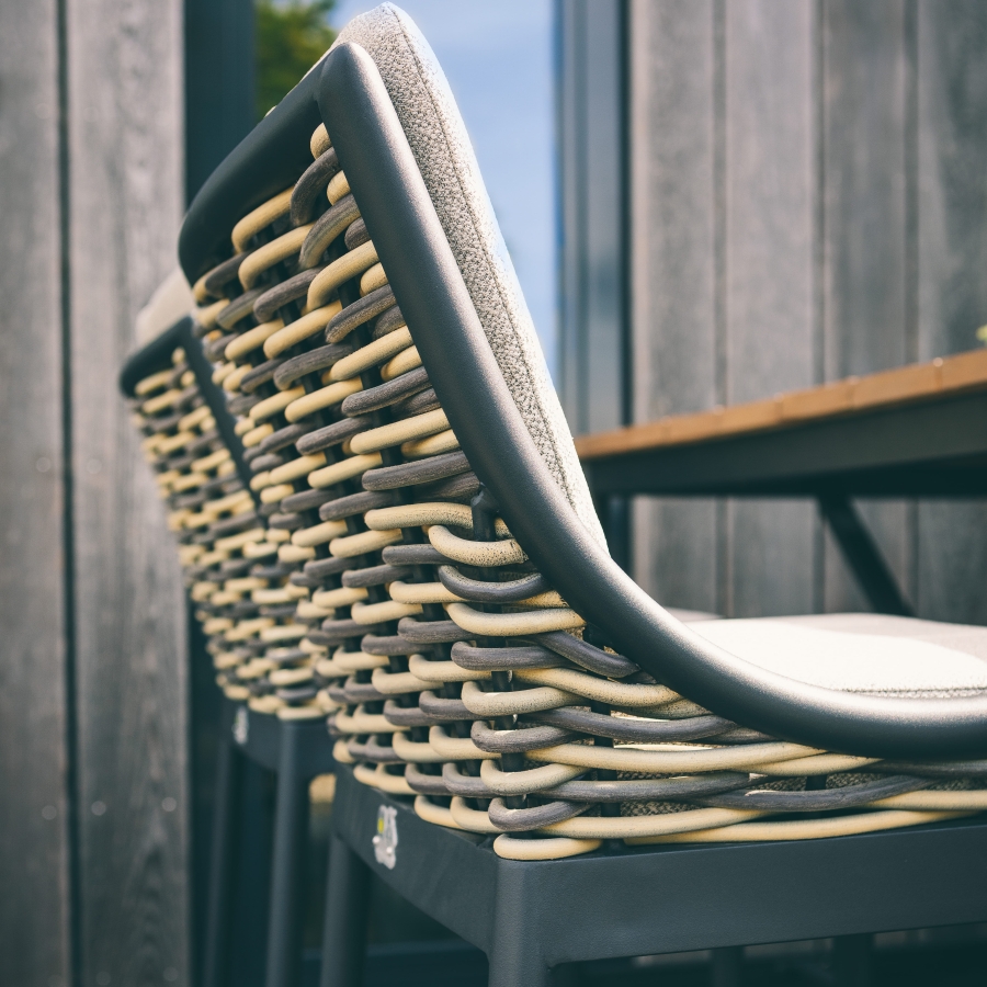 Der Apple Bee Milou Barstuhl Schwarz wird inklusive Polster geliefert, sodass er nach der Lieferung sofort einsatzbereit ist. Die exakt auf das Design abgestimmten Auflagen in Nature Grey sind bereits im Lieferumfang enthalten und müssen nicht separat erworben werden. Dank der durchdachten Kombination aus Gestell, Geflecht und Kissen ergibt sich ein harmonisches Gesamtbild, das direkt an Ihrem Bartisch oder Ihrer Theke eingesetzt werden kann.