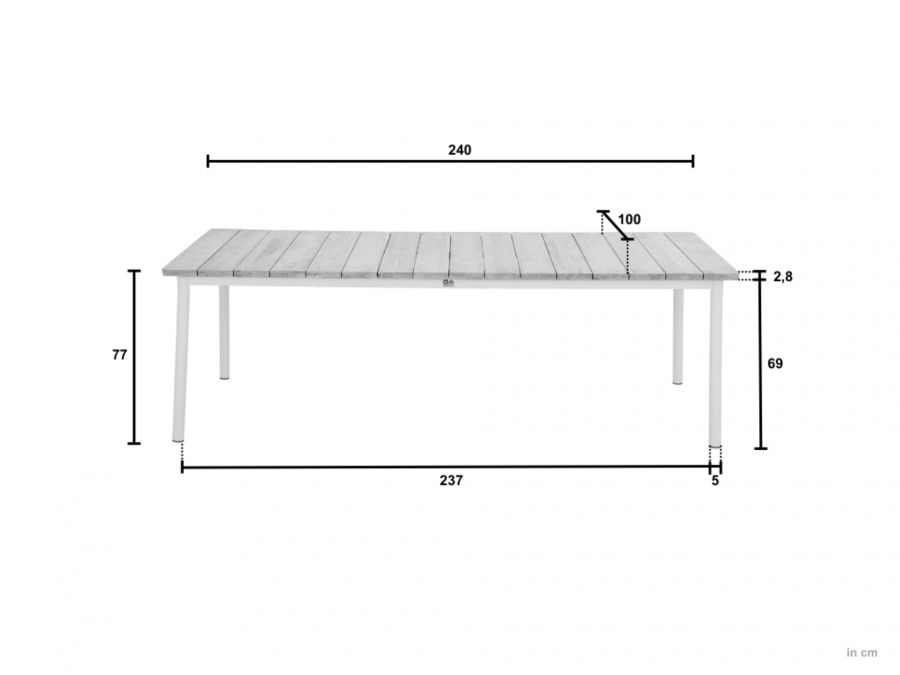 Mit einer Gesamtbreite von ca. 240 cm, einer Gesamttiefe von ca. 100 cm und einer Gesamthöhe von ca. 77 cm bietet der Apple Bee Milou Gartentisch viel Platz für Ihre Gäste. Darüber hinaus ist er mit nur ca. 52 kg so leicht, dass er problemlos bewegt und nach Belieben platziert werden kann.
