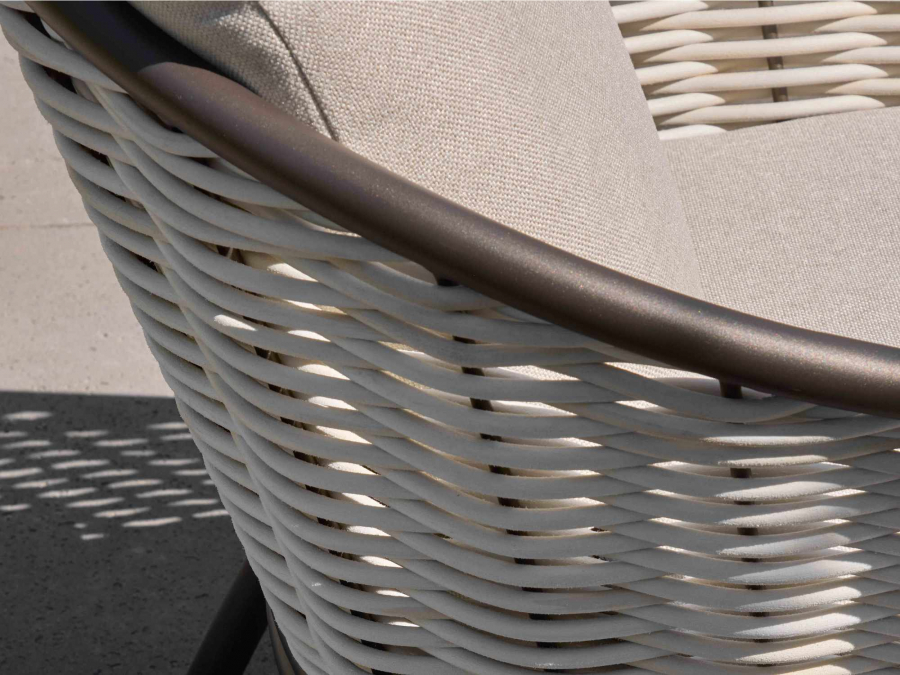 Das Loungemöbel-Set ist auf eine lange Nutzungsdauer im Freien ausgelegt. Die eingesetzten Materialien sind UV-beständig, sodass Farben wie Geflechtfarbe Oyster, Polsterfarbe Natur und Gestellfarbe Bronze auch bei Sonneneinstrahlung beständig bleiben. Die Kissenbezüge sind wasserabweisend, wodurch leicher Niederschlag an der Oberfläche abperlt. Die Unterseite der Kissen verfügt über ein offenes Gewebe, das in Kombination mit der Füllung aus Quick Dry Foam für ein schnelles Trocknen nach Feuchtigkeitseinwirkung sorgt. Zusätzliche Detailinformationen zu einzelnen Komponenten des Apple Bee Pine Key Bronze Programms lassen sich bequem über die Stückliste abrufen.
