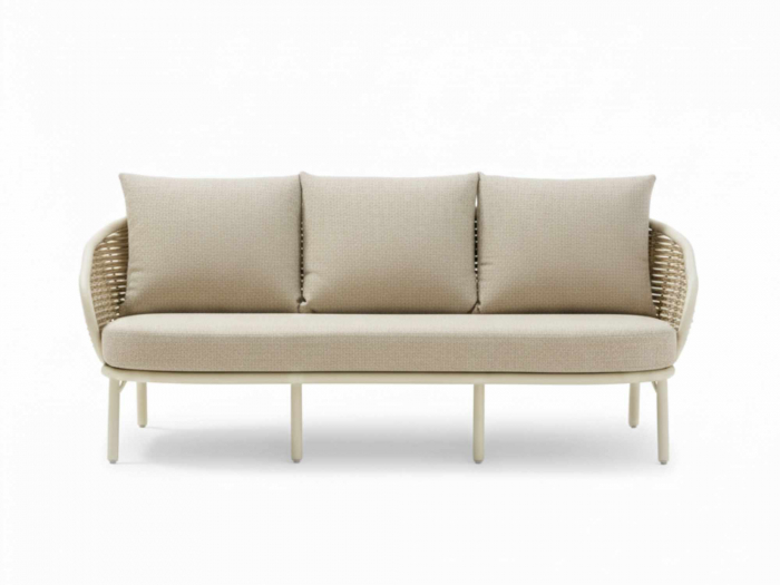Beim Material setzt das Apple Bee Pine Key Oyster Loungemöbel-Set auf eine durchdachte Kombination für den dauerhaften Einsatz im Freien. Das Geflecht besteht aus Polyrattan in der Farbgebung seashell und ist speziell für den Einsatz im Freien konzipiert. Das Gestell ist aus Aluminium gefertigt und zusätzlich pulverbeschichtet, was eine gute Widerstandsfähigkeit gegen Witterung und Korrosion unterstützt. Die Polster in der Farbe Cotton Flower setzen einen hellen, freundlichen Akzent und sind im Lieferumfang bereits enthalten.