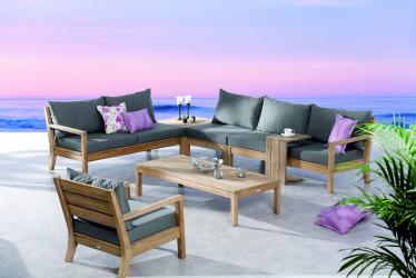 Das Teakholz verleiht dem Gartenstuhl nicht nur eine exklusive grey-wash Optik, sondern macht ihn außerdem witterungsbeständig. Mit einem eleganten Kissen in anthrazit ist das Eckteil zwar charmant, doch das eigentliche Highlight sind seine Polster mit Reißverschluss.