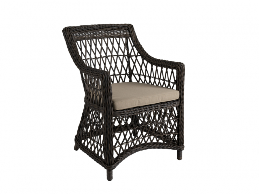 Bestehend aus einem langlebigen Gestell aus Aluminium und einem witterungsbeständigen Polyrattan-Geflecht überzeugt der Beatrice Diningsessel durch hohe Beständigkeit und Langlebigkeit. Die beige Polsterung besteht aus einem Kissenbezug mit einem Anteil von ca. 100 % Olefin, das besonders für seine Widerstandsfähigkeit und Wasserabweisung bekannt ist. Daher ist dieser Sessel optimal für den Einsatz im Freien geeignet.