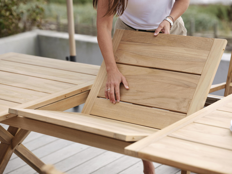 Der Gartentisch wird zur Selbstmontage geliefert und ist leicht zu montieren. Seine ausziehbare Funktion macht ihn zu einem äußerst flexiblen Möbelstück, das sich leicht an unterschiedliche Bedürfnisse anpassen lässt. Neben seiner wetterbeständigen Qualität, die ihm eine lange Lebensdauer im Außenbereich sichert, ist dieser Tisch dank seiner Bauart auch hervorragend für den Einsatz auf Balkonen geeignet.