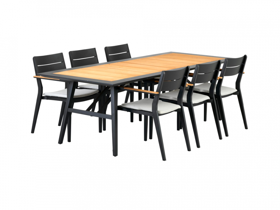 Für zusätzlichen Komfort verfügt das Brafab Chios Gartenmöbel-Set bereits über graue Kissen auf den Stühlen. Jedes Detail wurde sorgfältig ausgewählt und entworfen, um Ihnen das bestmögliche Produkt zu liefern. Darüber hinaus sind alle Komponenten aus hochwertigen Materialien wie Aluminium und Teak gefertigt, die eine Robustheit und Widerstandsfähigkeit aufweisen, die eine Nutzung über viele Jahre hinweg ermöglichen.