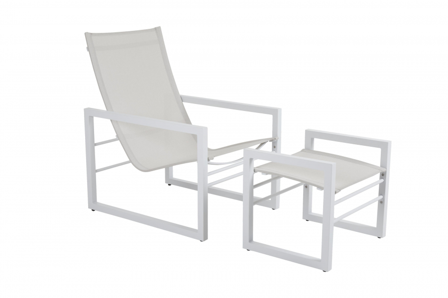 Der Brafab Vevi Loungesessel besteht aus einem Gestell aus pulverbescichtetem Aluminium, das für seine Langlebigkeit und Stabilität bekannt ist. Die Gestellfarbe in Weiß passt perfekt zur ebenfalls weißen Gewebe-Farbe des Sessels, wodurch ein harmonisches Gesamtbild entsteht. Die Textilbespannung besteht aus ca. 50% Polypropylen und ca. 50% Polychlorid, was für eine hohe Beständigkeit gegen die Elemente sorgt.