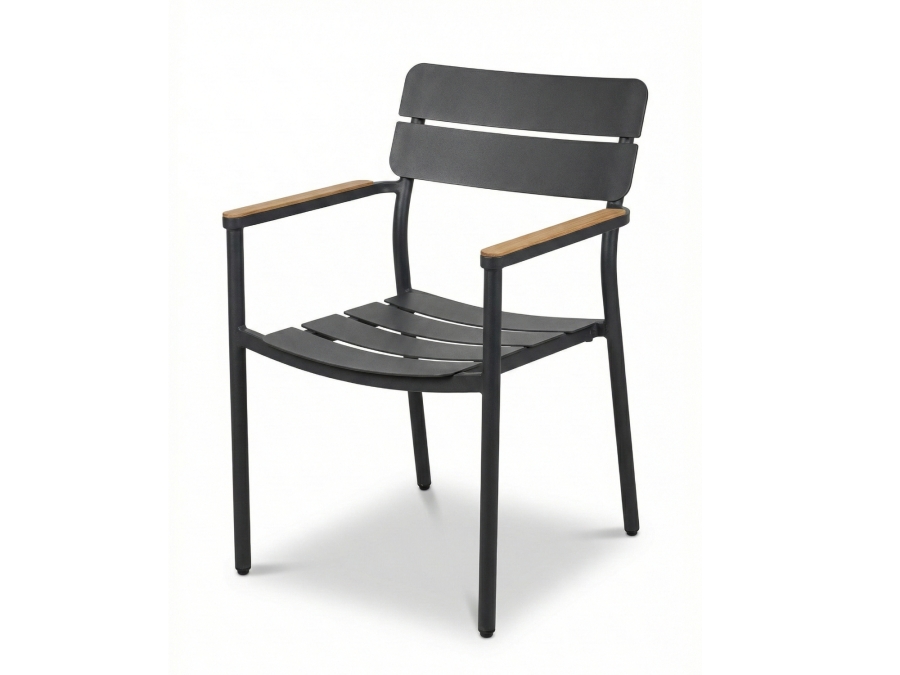 Durch seine Kombination aus robustem Aluminium, der neutralen Gestellfarbe Anthrazit und den Armlehnen in Holzoptik ist der Gartenstuhl vielseitig einsetzbar. Er eignet sich für private Gärten, Terrassen, Loggien und Balkone ebenso wie für wettergeschützte Bereiche in Wintergärten.