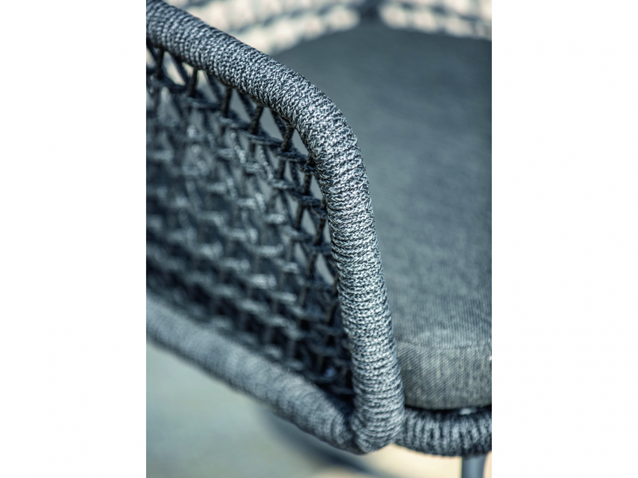 Die robusten Möbelstücken des Sets sind aus qualitativ hochwertigem Holz, strapazierfähiger Bespannung und langlebigem Metall gefertigt. Der Gartentisch zeichnet sich durch eine Tischplatte aus Teakholzlatten aus, die natürliches Flair verströmt, während das Aluminiumgestell durch seine Pulverbeschichtung Witterungsbeständigkeit garantiert. Die Sitzmöbel sind mit einer Kordelbespannung in ansprechendem Rautenmuster versehen, die nicht nur bequem, sondern auch ästhetisch ansprechend ist.