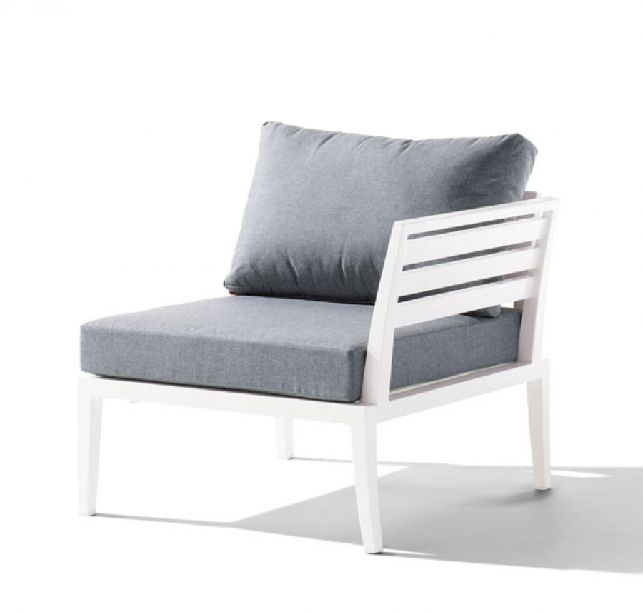 Das Seitenelement Cannes kann als eigenständiges Möbelstück genutzt oder nahtlos in bestehende Arrangements integriert werden, wodurch sich individuelle Loungegarnituren zusammenstellen lassen. Es lässt sich hervorragend mit weiteren Gartenmöbeln der Serie Cannes kombinieren.