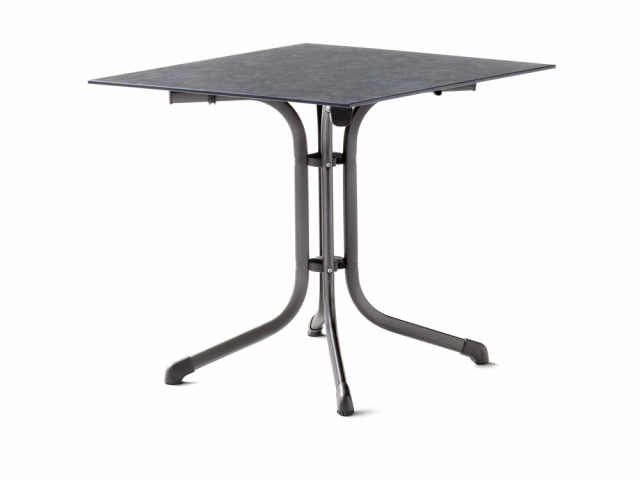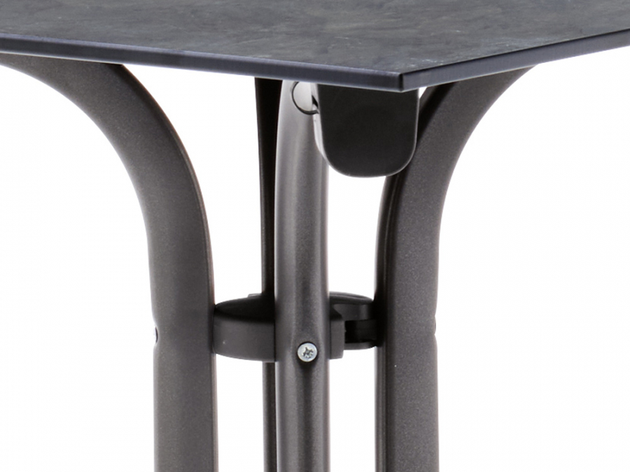Das Gestell des Tisches ist aus Profil-Stahlrohr gefertigt, polyesterbeschichtet, was es unempfindlich gegen Witterungseinflüsse macht. Der robuste und dennoch leicht zu reinigende Tisch besteht aus dem Material Polytec, was dem Gartentisch zusätzlich Beständigkeit gegen UV-Strahlung und somit eine erhöhte Langlebigkeit verleiht. Dabei bleibt der Tisch durch seine klappbare Funktion praktisch zu verstauen.
