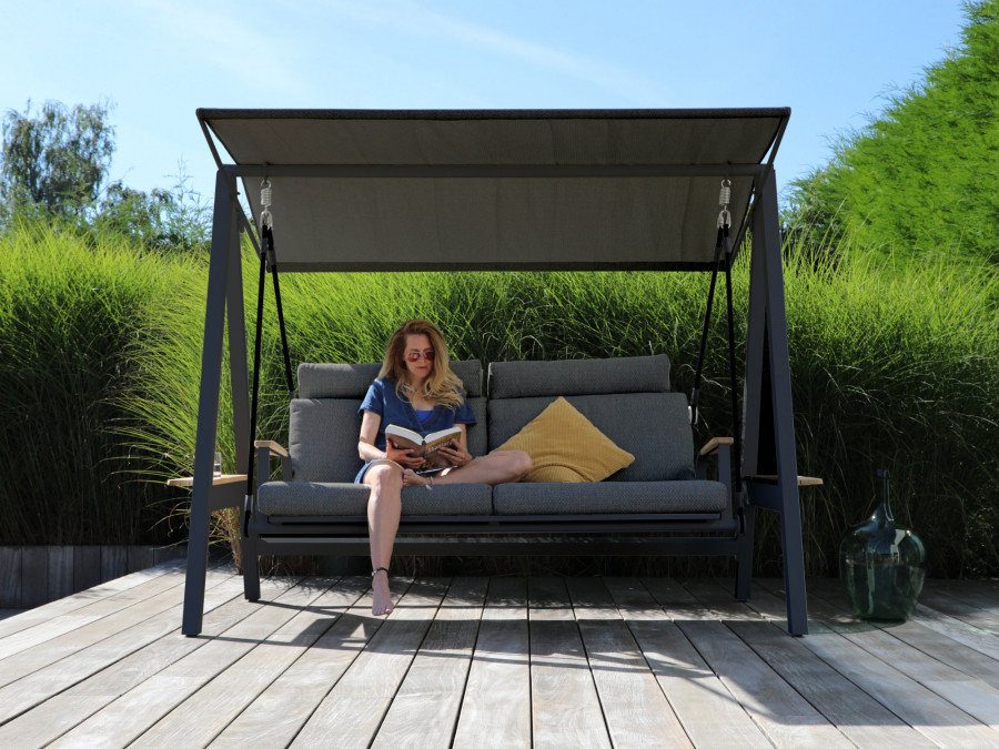 Hollywoodschaukel Zebra Aluminium Deluxe Graphite – stilvolle Relax-Oase für Terrasse, Balkon und Garten