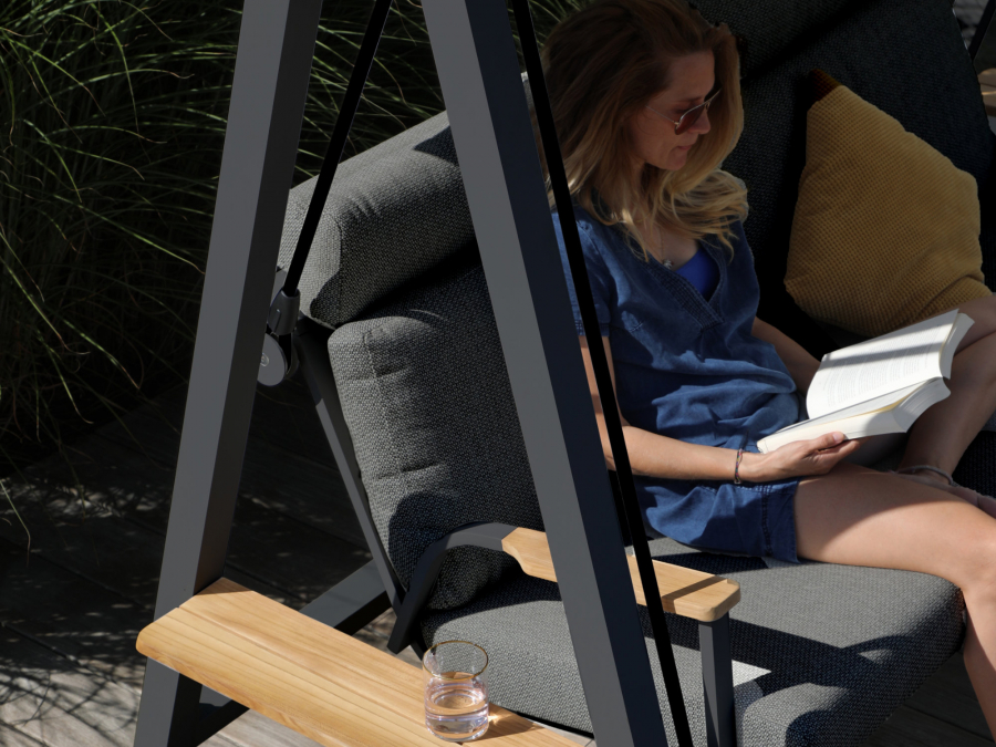 Die Hollywoodschaukel Zebra Aluminium Deluxe Graphite aus der Deluxe Serie ist eine hochwertige Hollywoodschaukel für den Außenbereich, die durch ihr modernes Graphite-Design und hohen Komfort überzeugt. Als luxuriöse Relaxzone auf Terrasse, Garten oder im Wintergarten bietet sie eine großzügige Sitzfläche und eine klare Linienführung. Die edlen Armlehnen aus Teakholz, die Kombinationsmöglichkeit mit Zubehör wie Classic Line Abdeckhaube für Zebra Hollywoodschaukel Aluminium Deluxe und die formschöne Ausführung machen diese Hollywoodschaukel zu einem eleganten Mittelpunkt in modernen Outdoor-Settings.