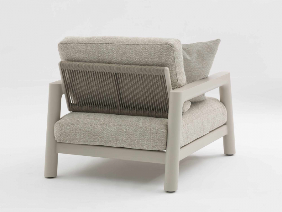 Das Gestell des Zebra Cozy Loungesessel besteht aus robustem Aluminium, das pulverbeschichtet ist und dadurch widerstandsfähig gegenüber Witterungseinflüssen und Kratzern bleibt. Die pulverbeschichtete Oberfläche im Farbton light taupe sorgt für eine hochwertige, matte Anmutung und lässt sich leicht reinigen.