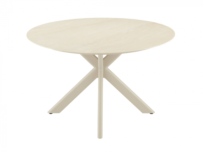 Das Gartenmöbel-Set überzeugt durch eine hochwertige Materialkombination für den Einsatz im Freien. Das Gestell besteht aus pulverbeschichtetem Aluminium, das ein geringes Gewicht mit hoher Stabilität verbindet und zusätzlich vor Korrosion geschützt ist. Die Armlehnen aus Teakholz setzen einen warmen, natürlichen Akzent und sorgen für eine angenehme Haptik. Die Tischplatte aus robustem Keramik in der Farbe Dune ist kratzunempfindlich und leicht zu reinigen.