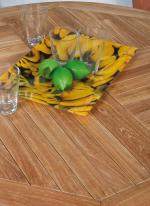 Der Tisch besteht aus hochwertigem Plantagen-Teakholz, das für seine Haltbarkeit und Witterungsbeständigkeit bekannt ist. Die Beschläge sind aus robustem Edelstahl, der dem Tisch zusätzliche Stabilität verleiht und perfekt mit dem warmen Holzton harmoniert. Dieses Materialpaar eröffnet eine neue Dimension von Qualität und Style in Ihrem Außenbereich.