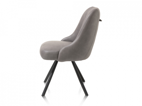 Der Drehstuhl Eva ist bekannt für seine hochwertigen Materialien. Der Sitz, bezogen mit dem Pala-Stoff, in einer angenehm hellgrauen Farbe garantiert hohen Komfort. Die Stuhlbeine aus pulverbeschichtetem Stahl in Rough Off Black verleihen den Stuhl ein modernes und zeitgenössisches Design. Mit der Kontraststichnaht auf der Rückenlehne und den praktischen Griff an der Rückenlehne, setzt der Stuhl stilvolle Akzente in jedem Raum.