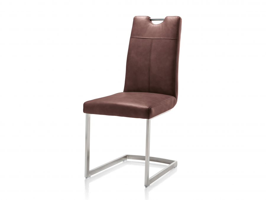 Durch sein aus Edelstahl gefertigtes Schwinggestell ist der Stuhl nicht nur stabil und robust, sondern gleichzeitig ein Hingucker in jedem Raum. Dies wird durch seine modernen und dennoch schlichten Designelemente erreicht. Besonders praktisch zeigt sich der Griff oberhalb der Rückenlehne, der die Handhabung des Stuhls merklich erleichtert.