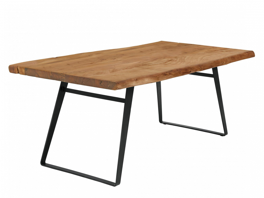 Der Santos Wald-Designtisch 240cm hebt sich durch seine atemberaubende natürliche Ästhetik hervor. Die Tischplatte in natürlicher Akazie präsentiert die unverwechselbare Maserung und die Baumkante des Holzes, ergänzt durch das schicke schwarze Eisen-Bügelgestell. Dieses Design macht jede Ausführung von diesem Designtisch individuell und einzigartig.