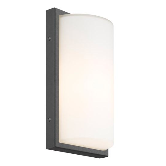 Die Edelstahl-Konstruktion der Wandleuchte steht für Langlebigkeit und Widerstandsfähigkeit. Eine pulverbasierte Beschichtung verleiht der Lampe ihre ansprechende, graphitfarbene Optik. Hinzu kommt die Blende aus Opalglas und die robuste Leuchtenarmatur aus Aluminium-Druckguss.