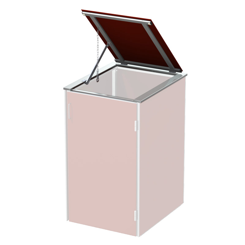 Der Binto Klappdeckel aus HPL 2397 ist kompatibel zu den Binto Mülltonnenboxen mit Verkleidung aus HPL, Edelstahl, Hartholz und Nadelholz.