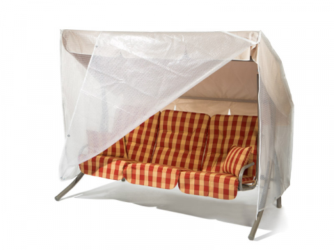 Die Abdeckhaube besteht aus einer langlebigen Polyethylen-Gitter-Folie und wiegt ca. 200g pro m². Sie bildet einen robusten Verbund aus zwei Folien und einem eingeschlossenen Gittergelege, welcher Ihre Hollywoodschaukel zuverlässig vor Verschmutzungen und Regen schützt. Dabei sorgt eine transparente Farbgebung dafür, dass das Design Ihrer Gartenmöbel weiterhin zur Geltung kommt.