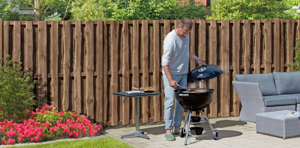 Eine Besonderheit des Bohlenzaunes Natura bilden die unbesäumten und sägerauhen Bretter. In Verbindung mit der braunen Druckimprägnierung verleihen diese dem Zaun ein besonders rustikales Aussehen.