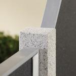 Der umlaufende Rahmen der Zaunelemente Stone besteht aus Aluminium und ergibt einen reizvollen Kontrast zu den Natursteinoberflächen Stone light und Stone dark. Das gradlinige Design unterstreicht noch einmal die Wirkung der modernen Materialien.