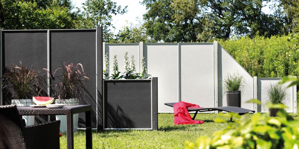 Die Stone-Zaunelemente können auch in Kombination der Ausführungen dark und grey gesetzt werden.