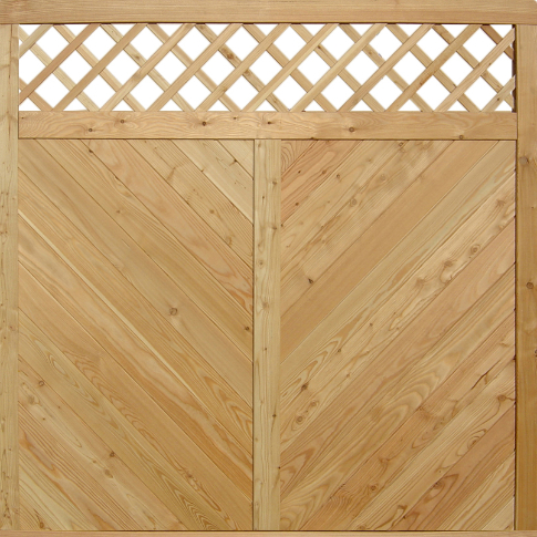 • Rhombuszaun: Ein moderner Zaun mit schräg verlaufenden Holzprofilen. Die offene Optik lässt Licht und Luft hindurch und schirmt dennoch vor neugierigen Blicken ab.
