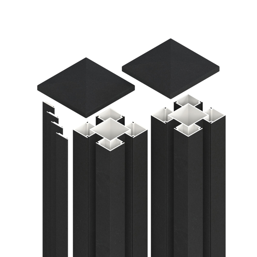 Im Lieferumfang enthalten sind 2 Pfosten Typ B, 4 Pfostennut Abdeckleisten sowie 2 Pfostenkappen aus Aluminium. Die Abdeckleisten ermöglichen einen sauberen Abschluss der ungenutzten Nuten und sorgen für ein einheitliches Erscheinungsbild über alle Zaunlinien hinweg, unabhängig davon, ob Sie ein System aus der Reihe Alu Fence, Multi Fence, Multi Fence Co-Extrusion, Multi Fence Elegance B oder Multi Fence Cube einsetzen. Die mitgelieferten Pfostenkappen schützen die offenen Profilenden vor eindringender Feuchtigkeit und tragen so zur Langlebigkeit der Aluminium-Konstruktion bei.