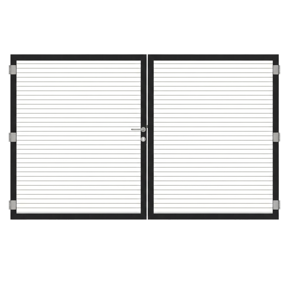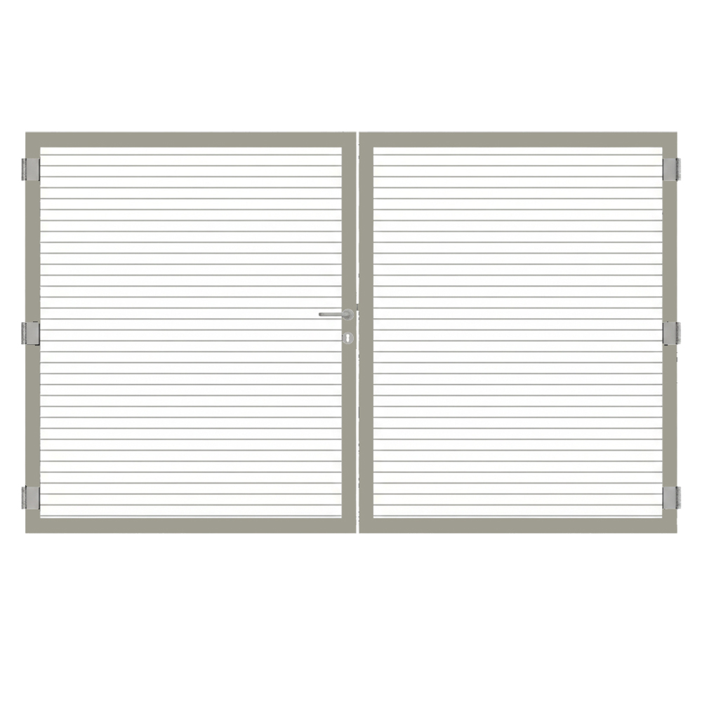Das Tor besteht vollständig aus Aluminium und ist damit besonders korrosionsarm und formstabil. Sowohl der Rahmen als auch die Füllung sind rundum pulverbeschichtet. Diese Oberflächenbehandlung macht das Osmo Doppeltor witterungsbeständig, extrem pflegeleicht und dauerhaft langlebig.