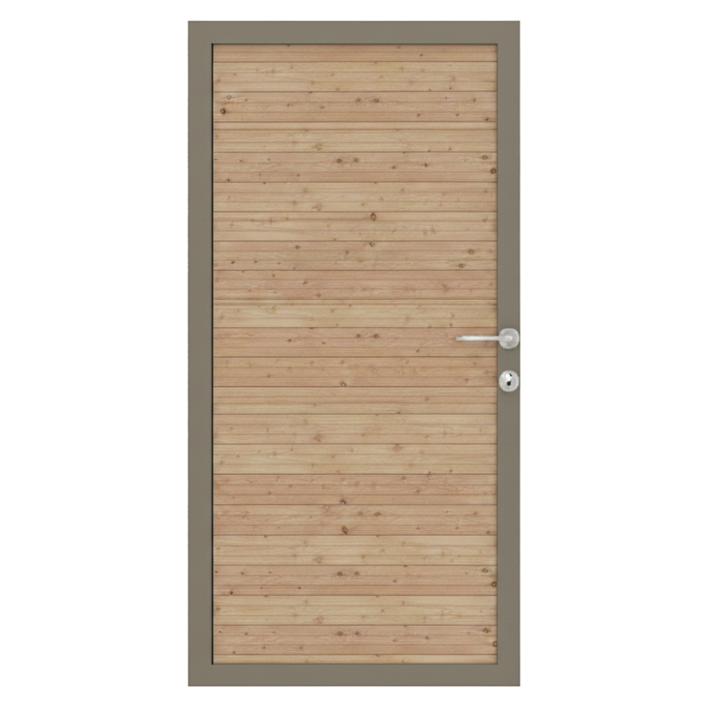 Das Osmo Juel A Lärche Einzeltor Sondermaß besteht aus dem robusten Material Lärche und verbindet natürliche Optik mit hoher Beständigkeit. Die Holzfüllung ist in Form von Lamellen ausgeführt und unterstreicht das harmonische Erscheinungsbild im Garten- und Terrassenbereich. Der tragende Rahmen aus Aluminium sorgt für zusätzliche Stabilität und reduziert gleichzeitig den Pflegeaufwand.