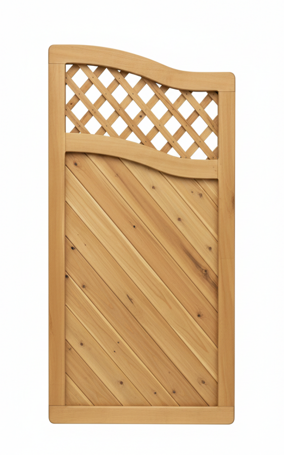 Der Rahmen dieses Sichtschutzzaun-Abschlusselements ist stabil konstruiert und auf eine dauerhafte Nutzung im Außenbereich ausgelegt. Die Verbindungen sind verzapft und edelstahl-verschraubt, was die Rahmenecken dauerhaft belastbar macht. Die Füllung aus diagonal angeordneten Nut-Feder-Bretter ergibt eine nahezu blickdichte Fläche mit markanter Profiloptik. Im oberen Bereich wird diese Fläche durch ein Gitterfeld optisch aufgelockert, wodurch der Sichtschutz mit einer leichten, dekorativen Note kombiniert wird. Die Profiloptik betont die klare Linienführung und fügt sich harmonisch in weitere Elemente der Serie Lido ein.