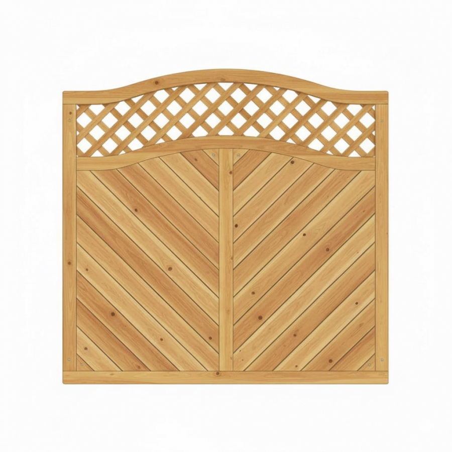 Der Sichtschutzzaun Lido Kronenbogen mit Gitter Lärche-Douglasie 180x180-165cm vereint einen zuverlässigen Sichtschutz mit einer langlebigen, durchdachten Konstruktion. Die Kombination aus robustem Holz, diagonal angeordneten Nut-Feder-Bretter, stabilem Mittelsteg und korrosionsbeständigen Edelstahl-Verbindungen sorgt für hohe Widerstandsfähigkeit gegen Witterungseinflüsse. Die hochwertige Profiloptik, der formschöne Kronenbogen und das dekorative Gitter machen dieses Hauptelement der Serie Lido zu einer attraktiven Lösung für alle, die Wert auf Qualität, Stabilität und ein stimmiges Gesamtbild ihrer Sichtschutzzaun-Anlage legen.